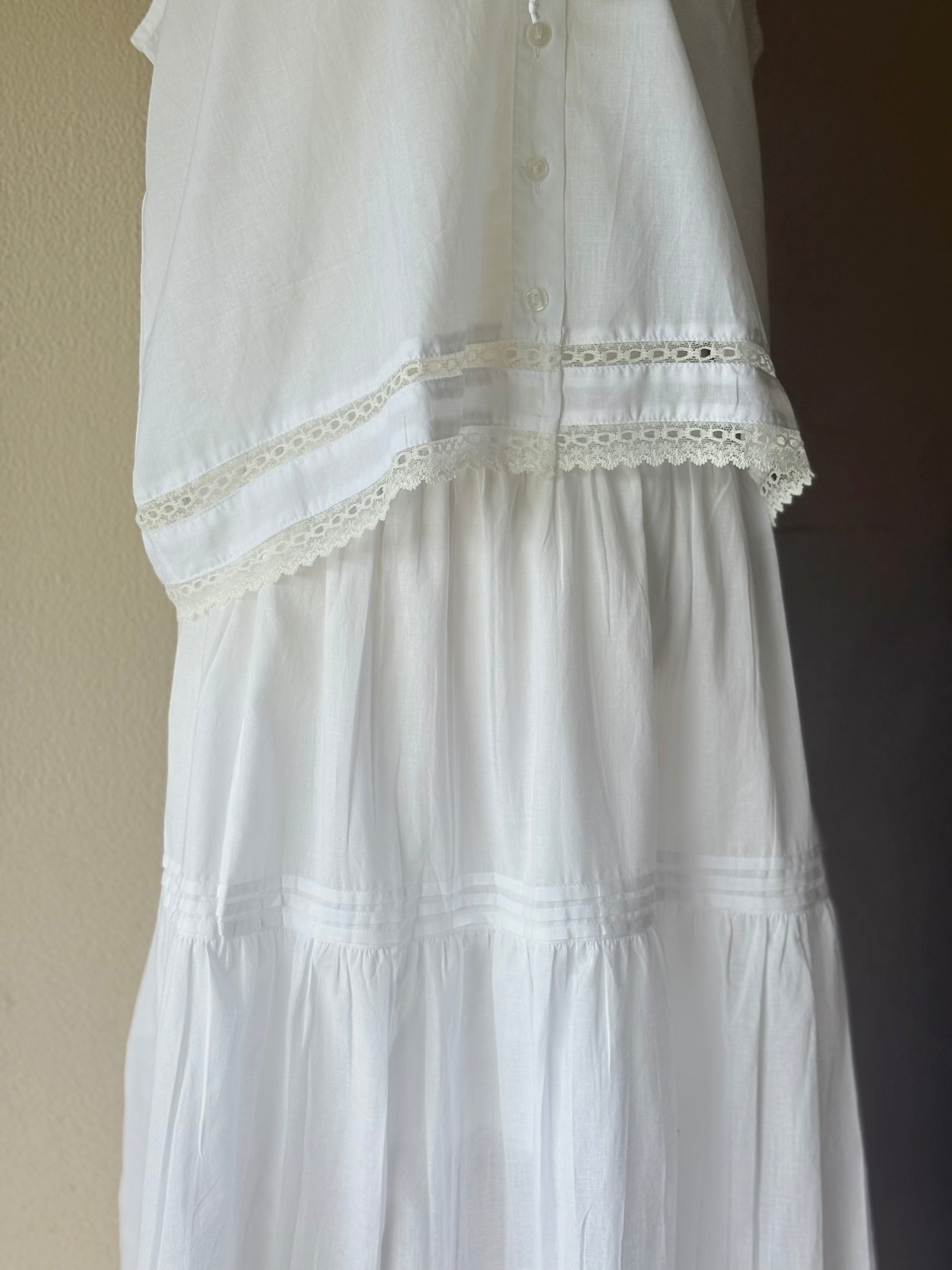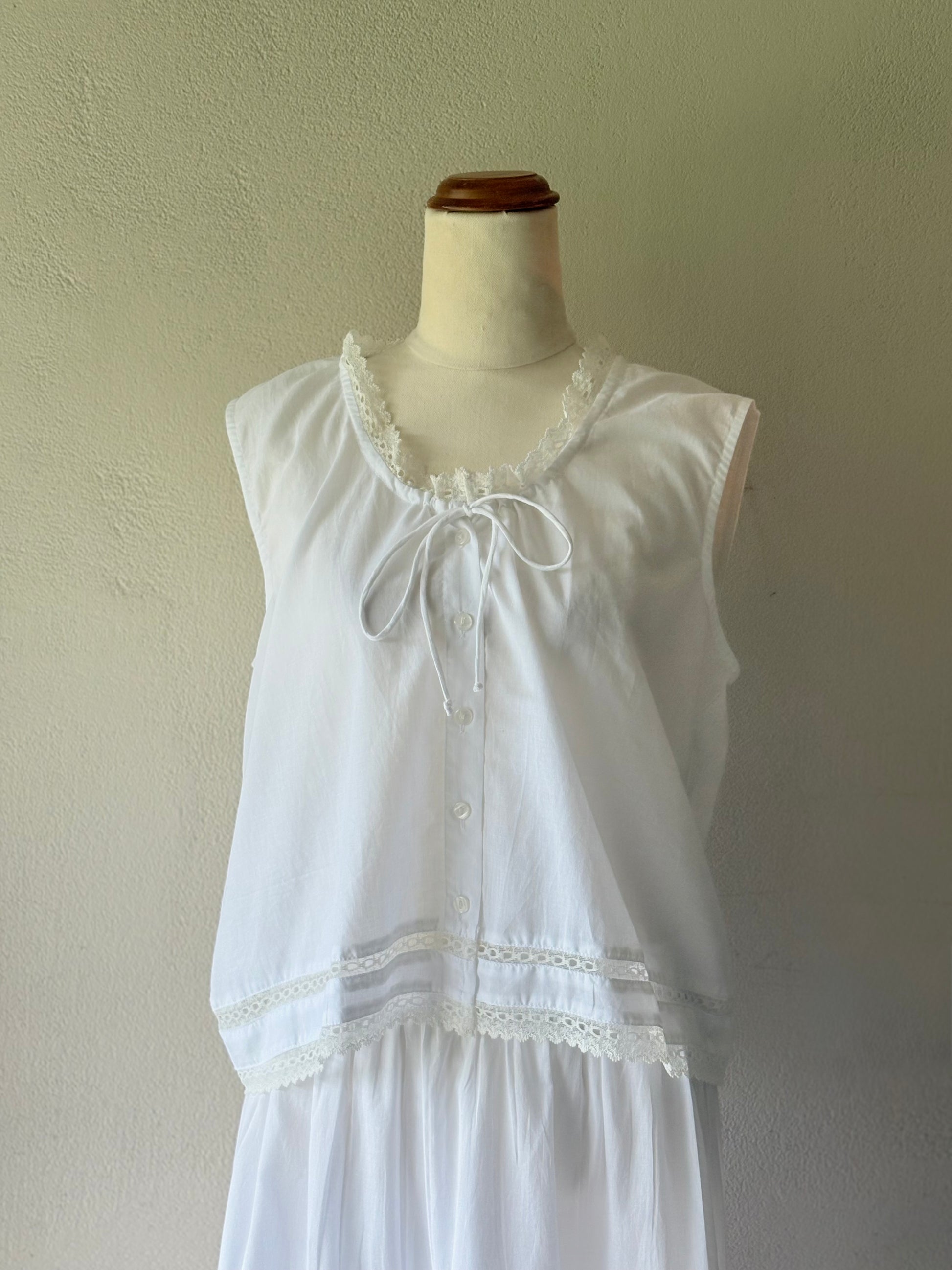 Soft, lightweight cotton with delicate lace trimming along the neckline and hem, the Eden Blouse is designed for effortless everyday wear. Featuring a sleeveless cut, button-down front and a feminine tie detail, it pairs perfectly with denim for a relaxed, easy look.